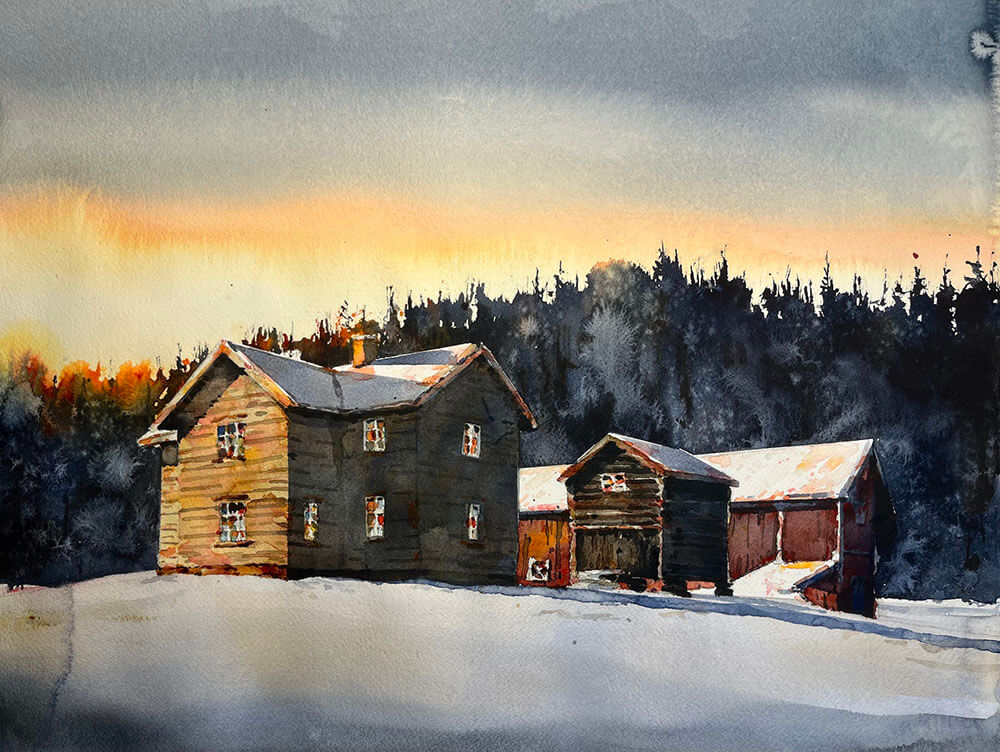 © Björn Bernström – Winter farm – Watercolour on ARCHES® Aquarelle cold pressed paper