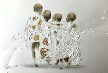 David Gache makes paper sculptures using the wet folding technique among others. His preferred subjects are living ones, and he conceives of his works as stories in a square. He has found ARCHES® Aquarelle paper to be particularly well suited to folding organic curves.