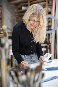 Sabine Ziegler est une artiste allemande qui vit et travaille à Munich. Passionnée par la peinture à l’aquarelle, elle puise son inspiration dans la nature, les paysages et les scènes urbaines. Son travail consiste non pas à représenter la réalité mais à transmettre une impression, une intuition, et à rendre visibles des émotions. Depuis 2007, Sabine enseigne la peinture et, depuis 2016, elle est membre du conseil d’administration de la Société allemande d’aquarelle. Ses tableaux sont exposés en Allemagne et dans toute l’Europe.